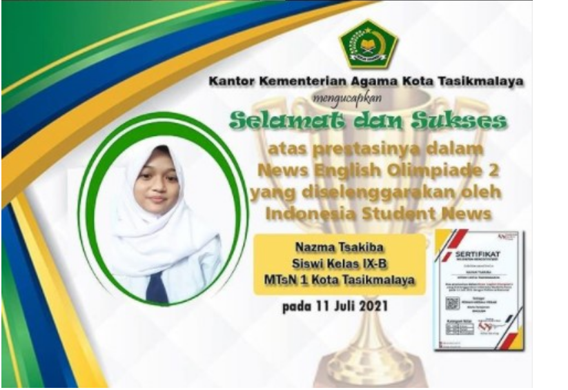 Siswi MTs Negeri 1 Kota Tasikmalaya Raih Medali Perak Olimpiade 3 Bahasa Inggris Tingkat Nasional