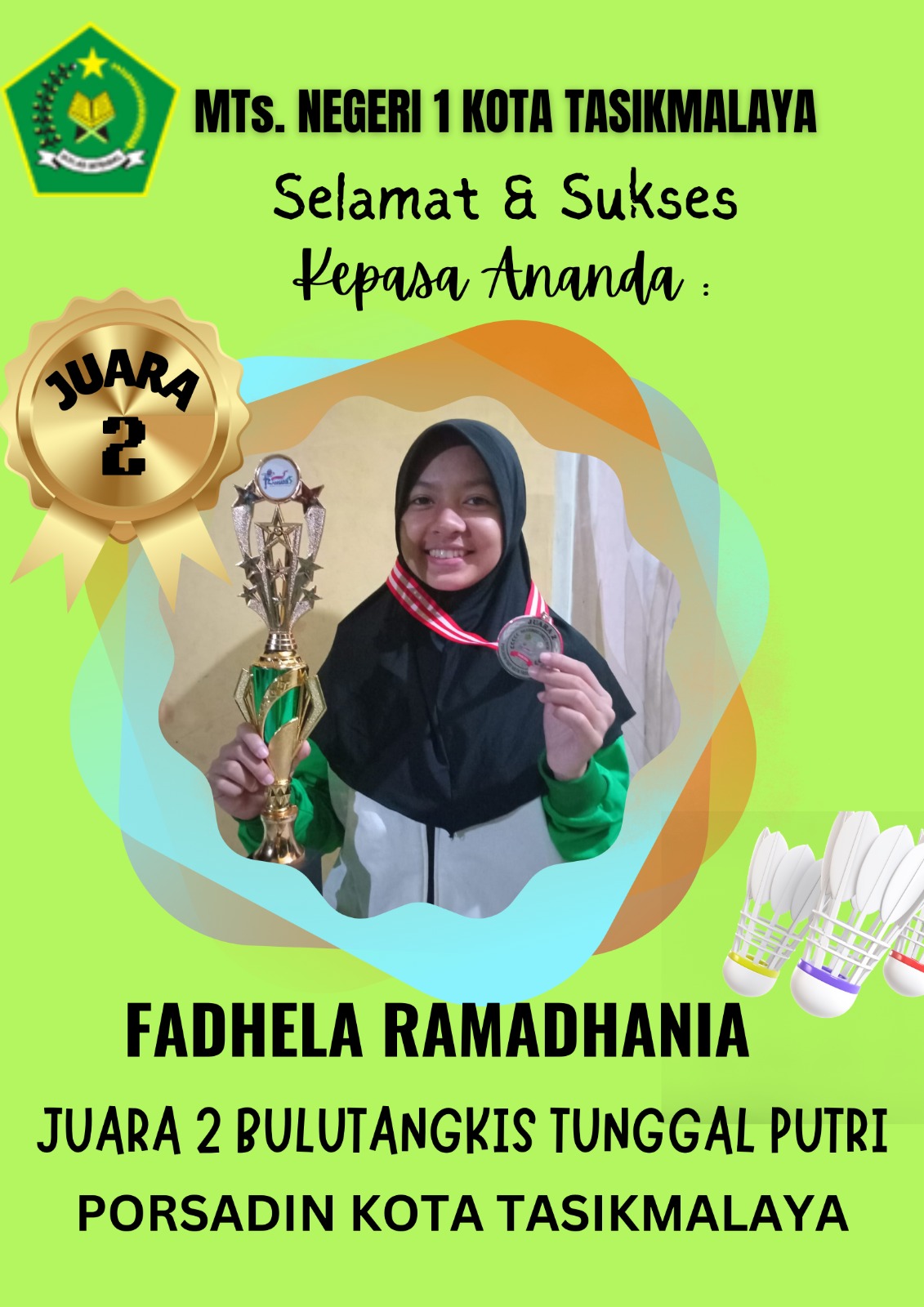 Siswi MTs Negeri 1 Kota Tasikmalaya Raih Medali Perak Olimpiade 2 Bahasa Inggris Tingkat Nasional