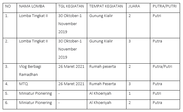 Tabel Kejuaraan Ekstra Kurikuler Pramuka